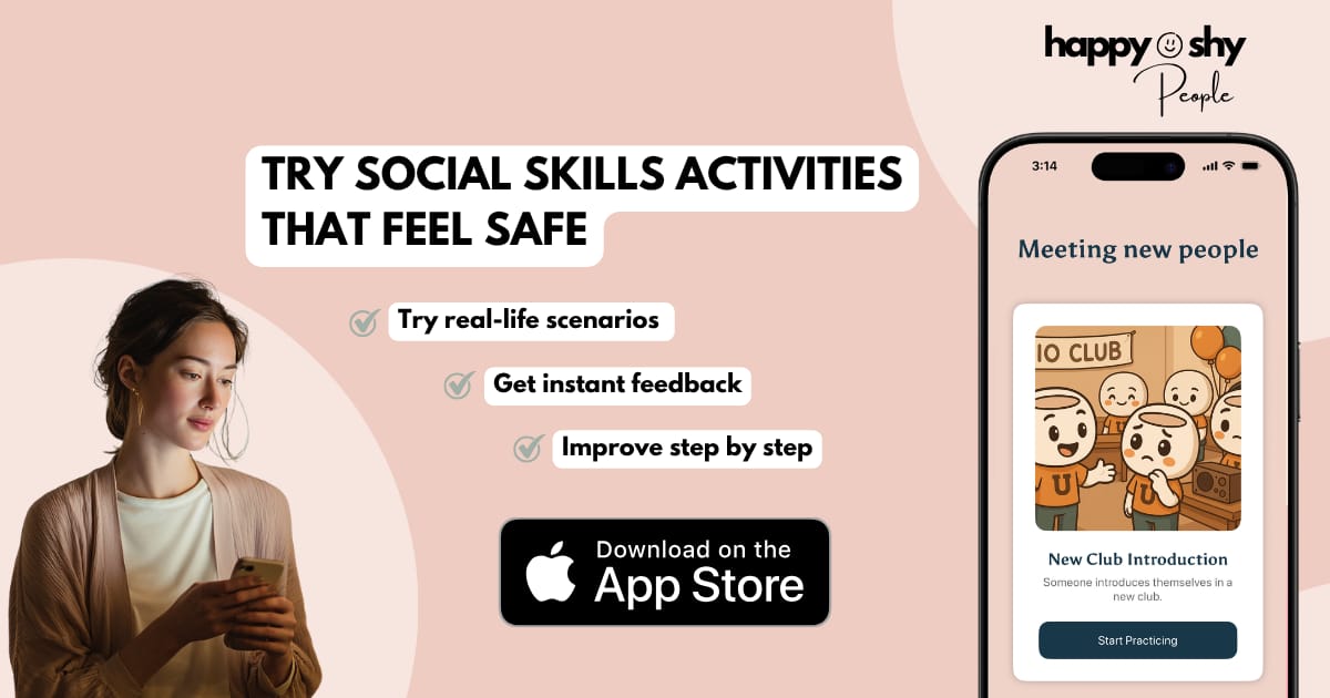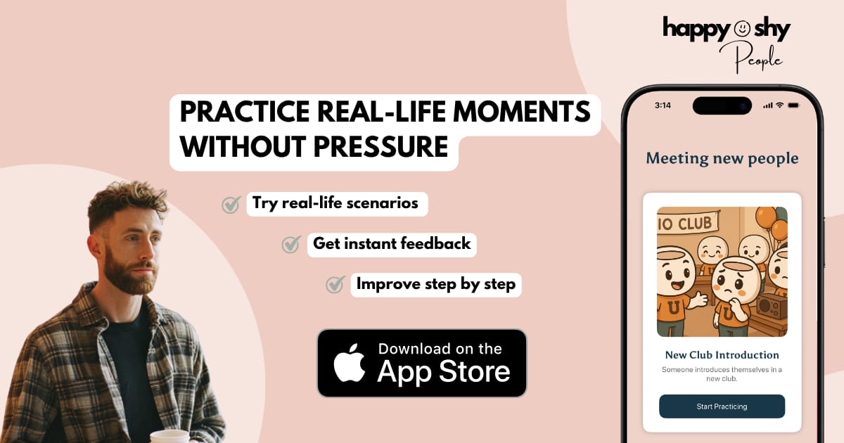 I’ve incorporated many of these roleplay scenarios into the Happy Shy People app. We have a "rehearsal room" feature where you can walk through these steps at your own pace. It’s like a gym for your social muscles.